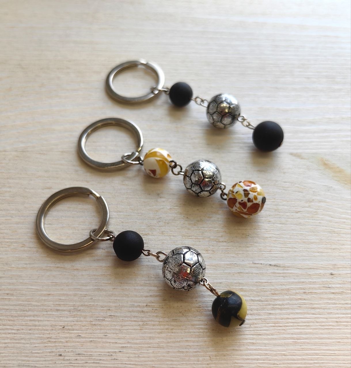 Классический брелок с янтарными шариками и металлической подвеской в виде футбольного мяча, в ассортименте.
