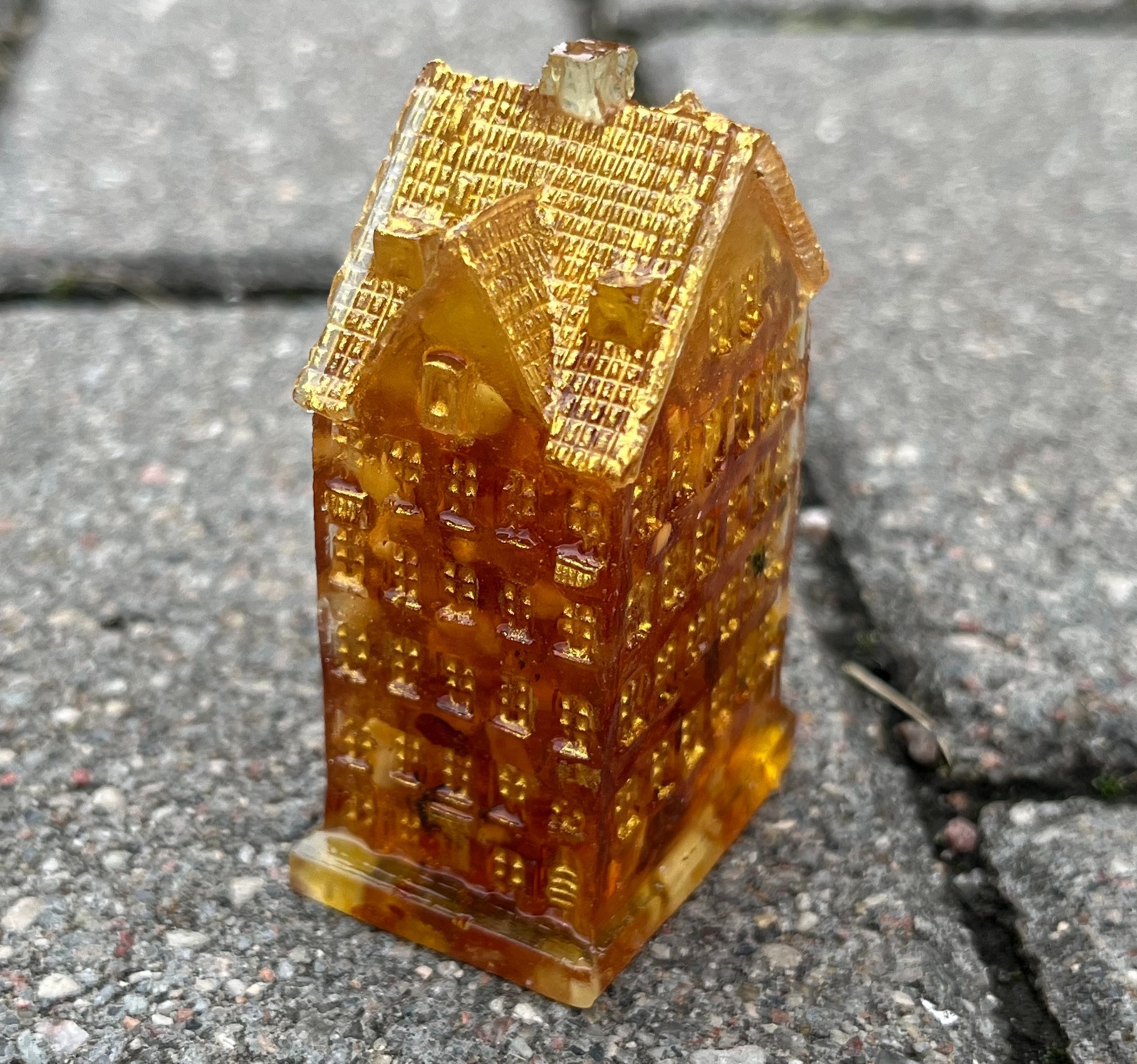 Фигурка-сувенир "Домик "Многоэтажка", янтарная композиция.