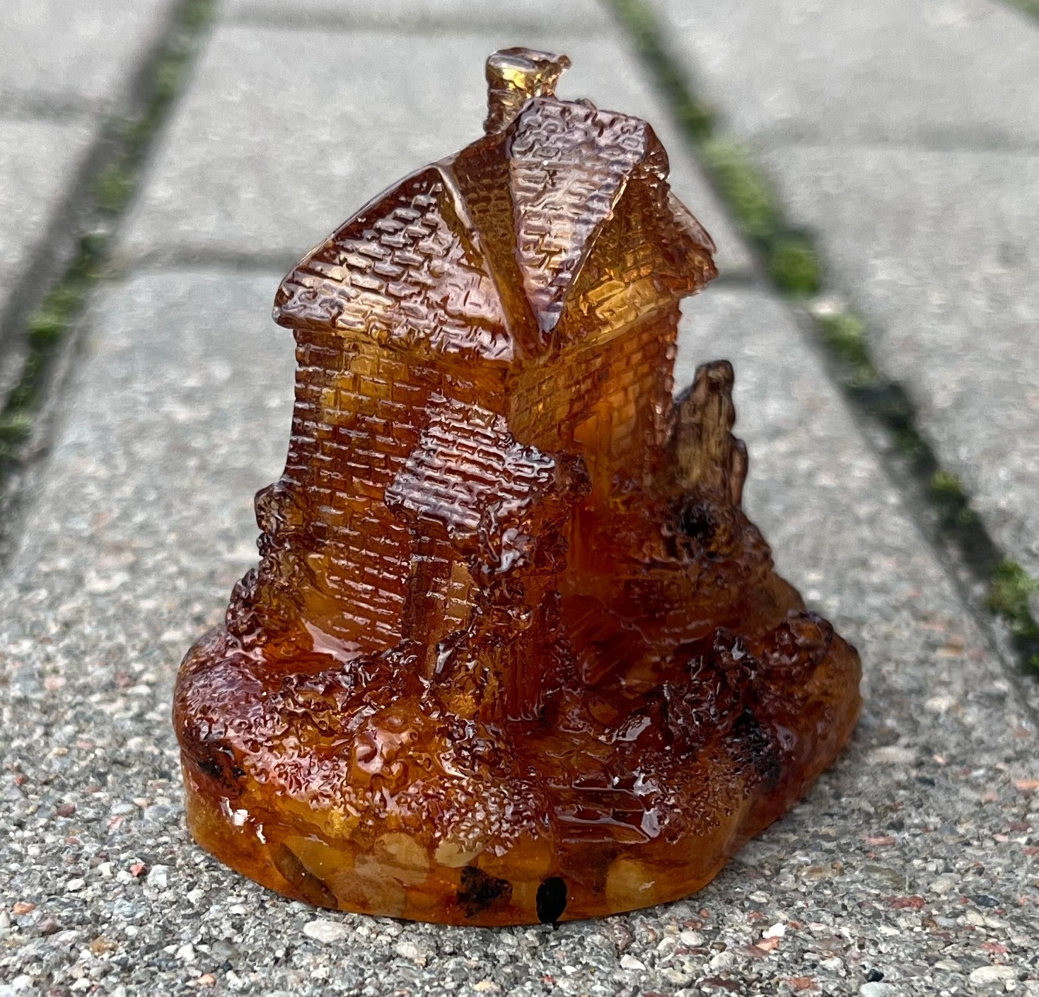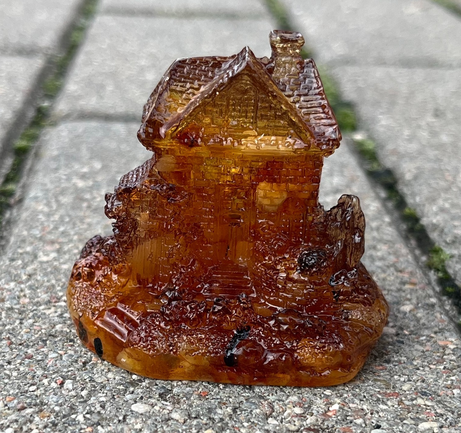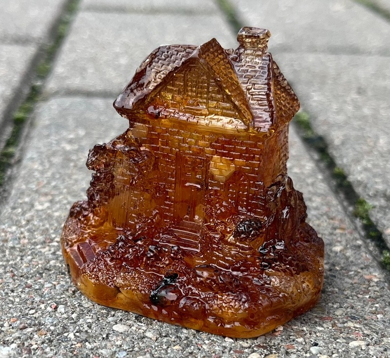 Фигурка-сувенир "Домик "Усадьба", янтарная композиция.