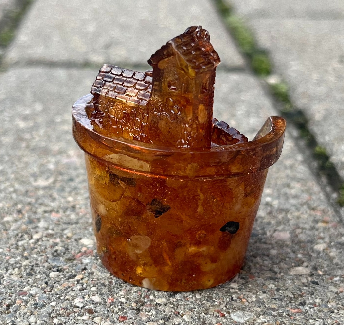 Фигурка-сувенир "Домик в кашпо", янтарная композиция.