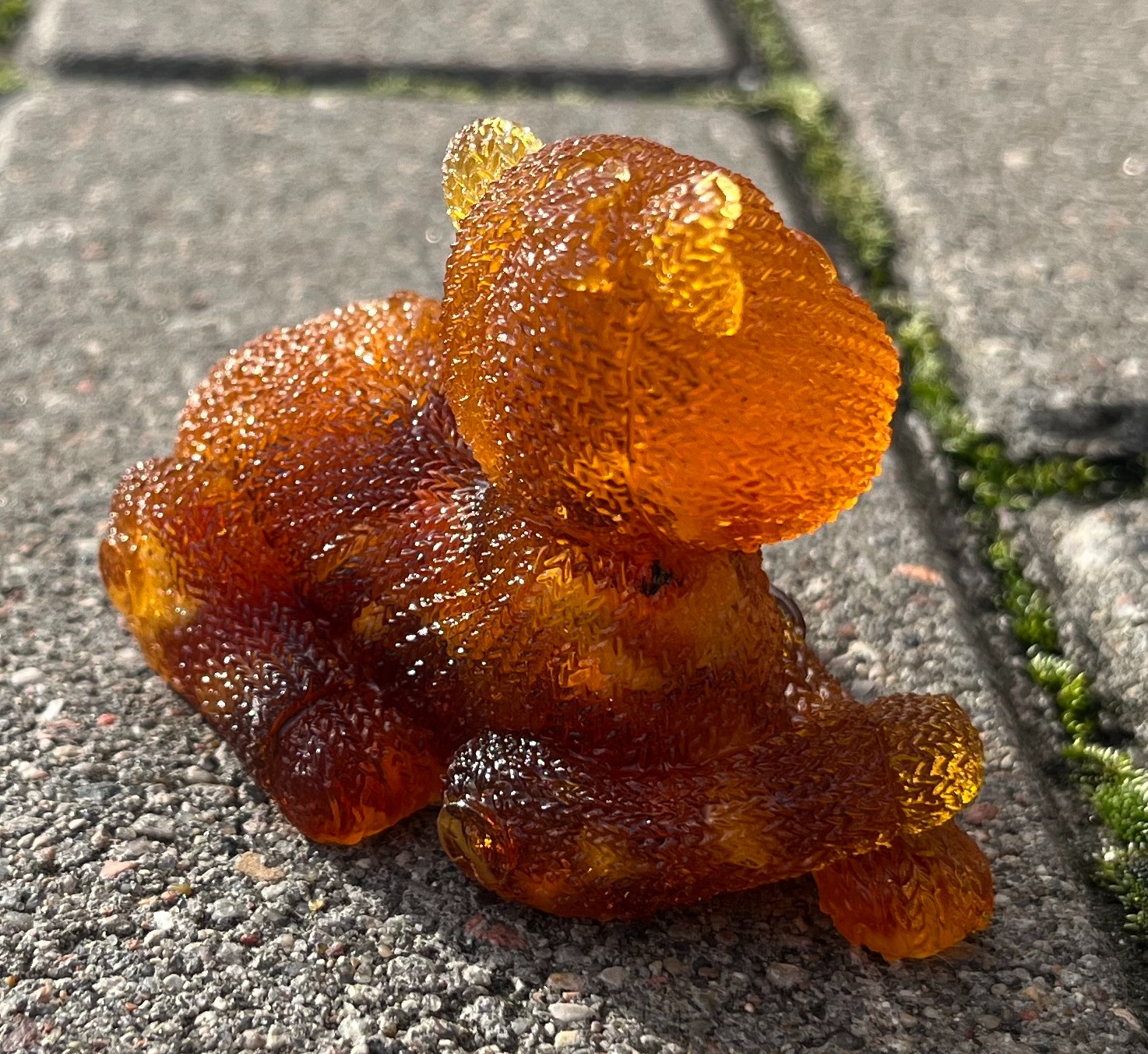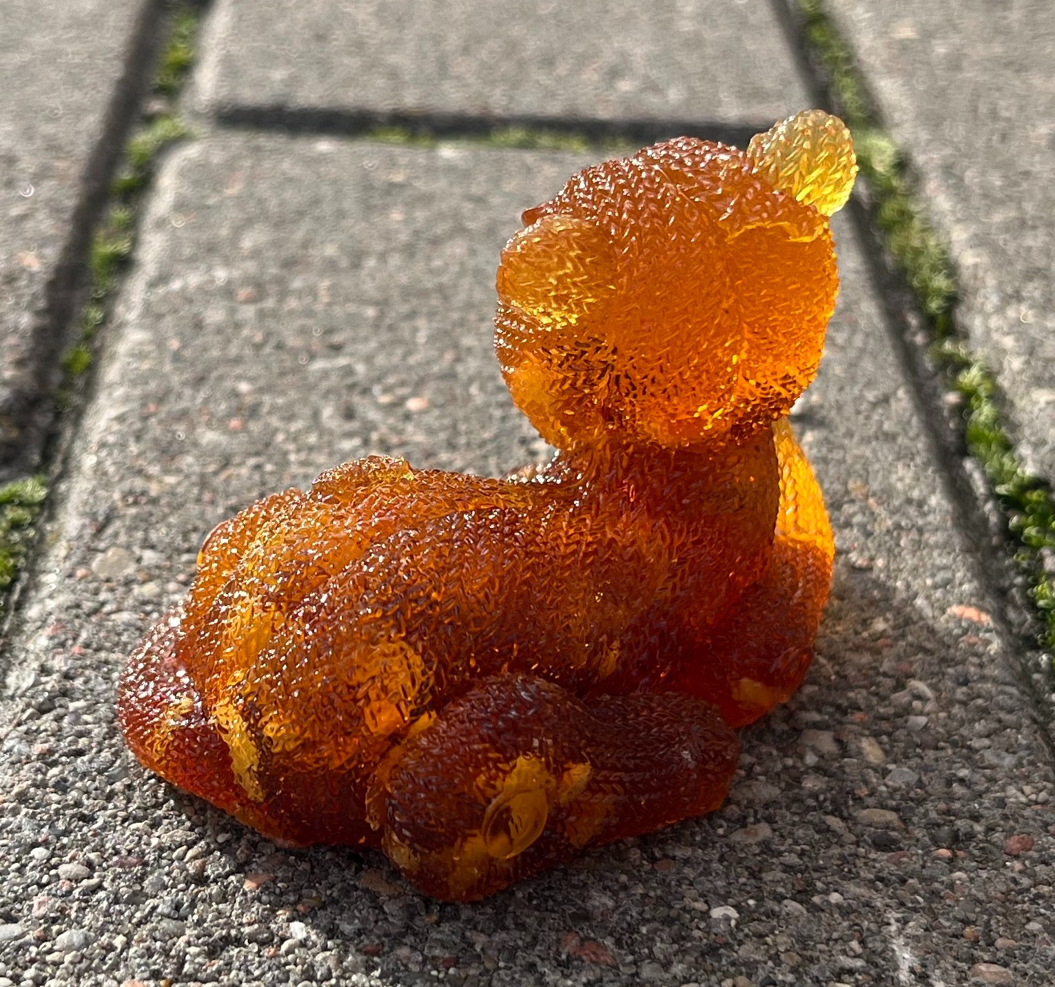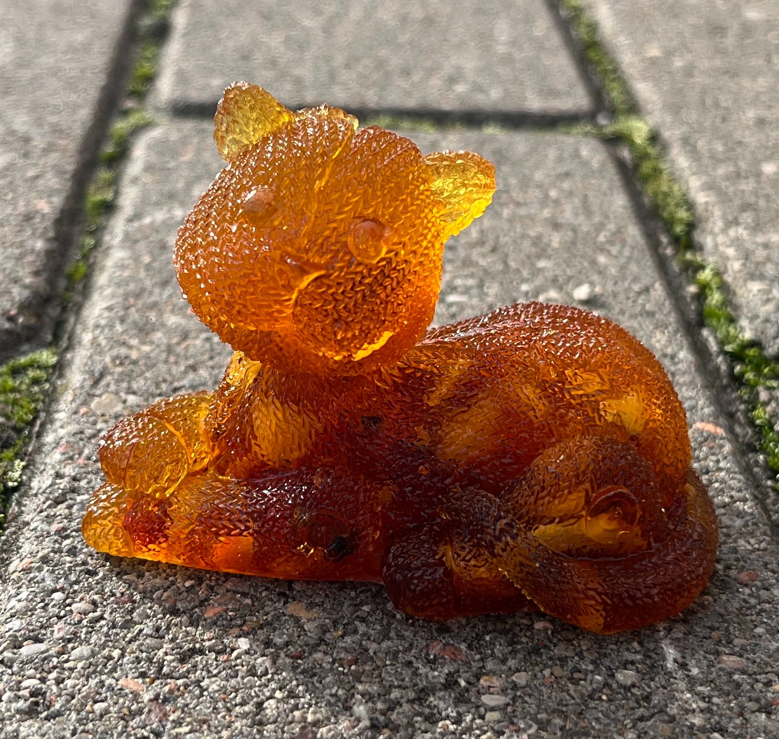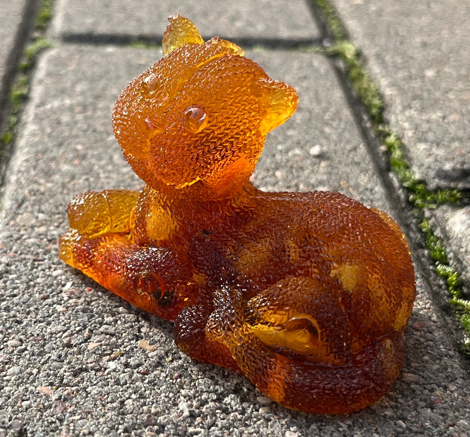 Фигурка-сувенир "Кот вязаный отдыхает", янтарная композиция.