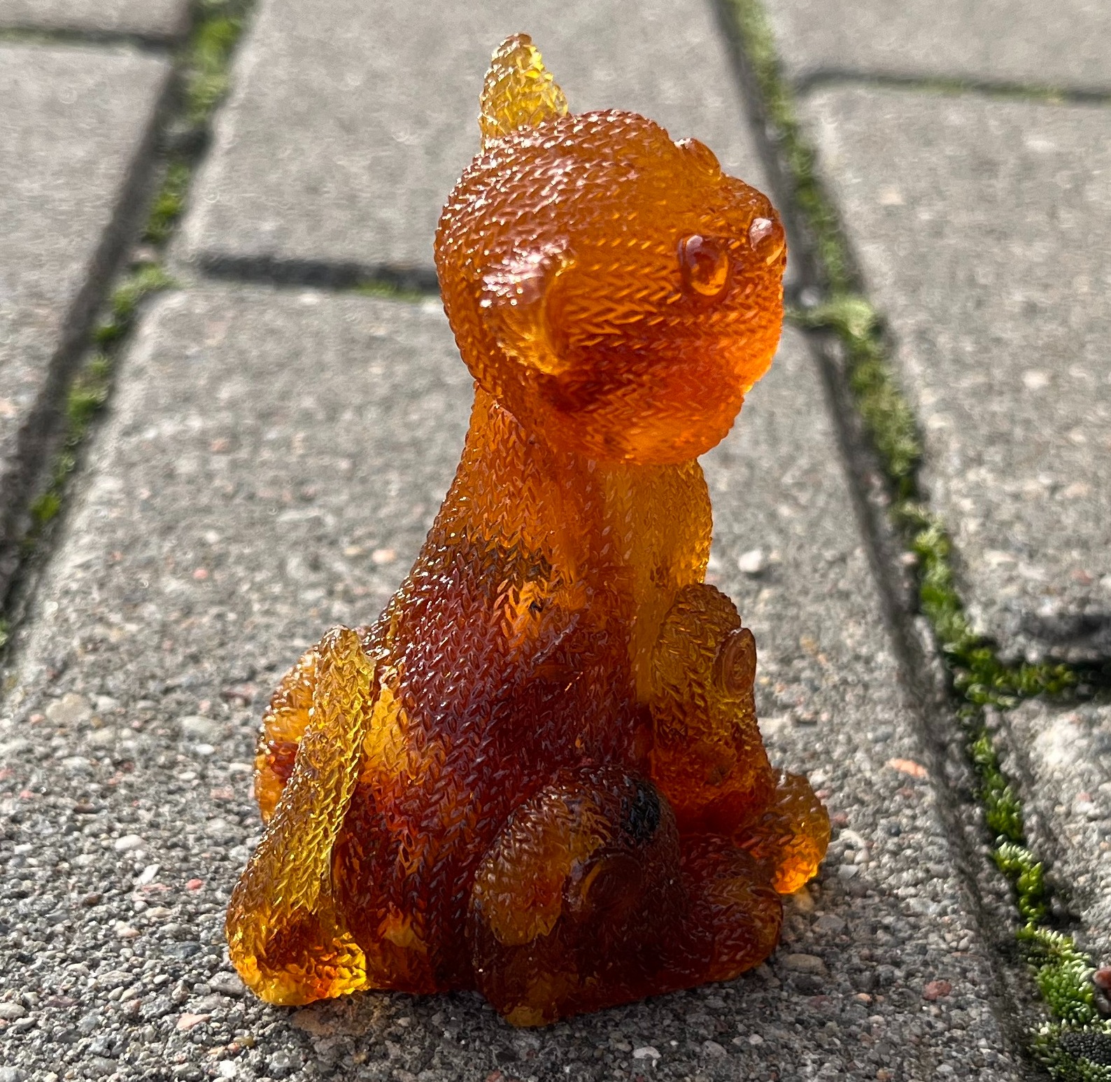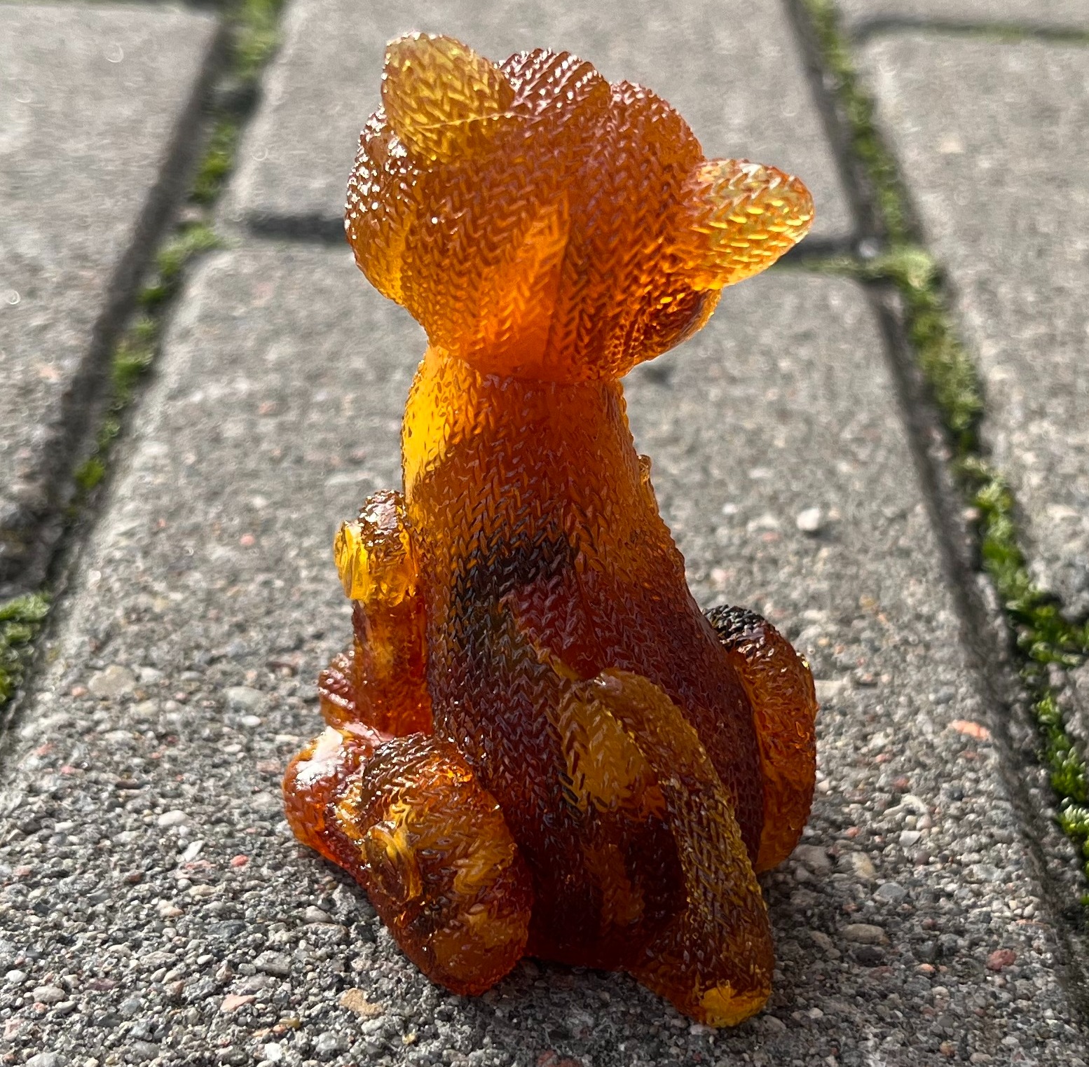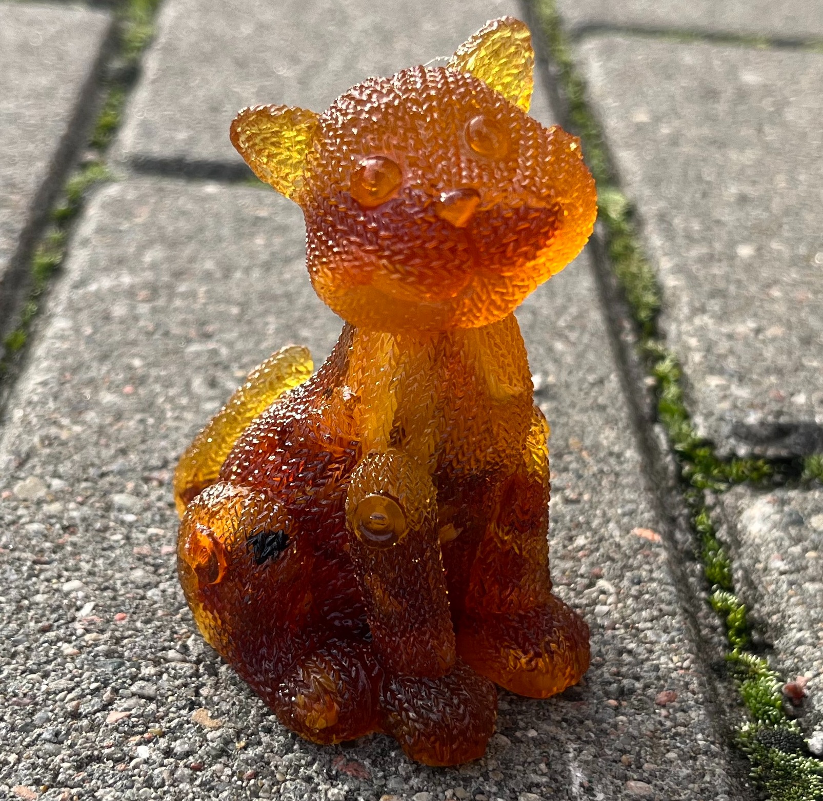 Фигурка-сувенир "Кот вязаный сидит", янтарная композиция.