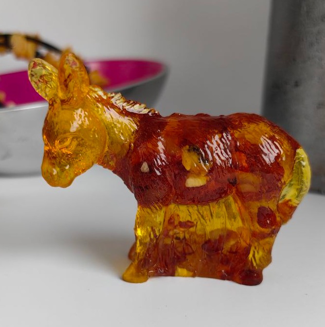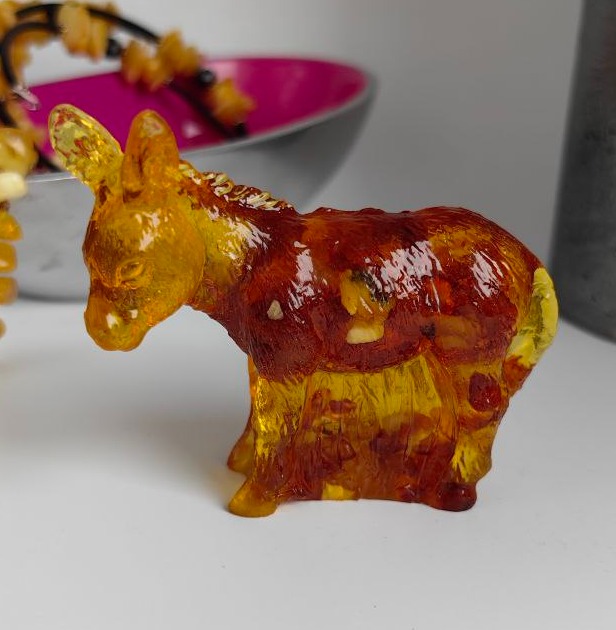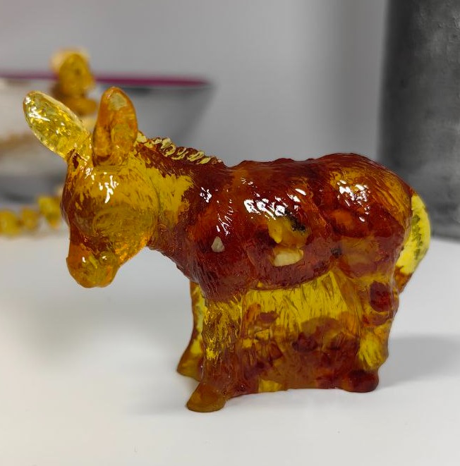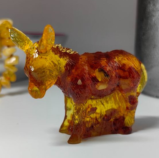 Фигурка-сувенир "Ослик", янтарная композиция.