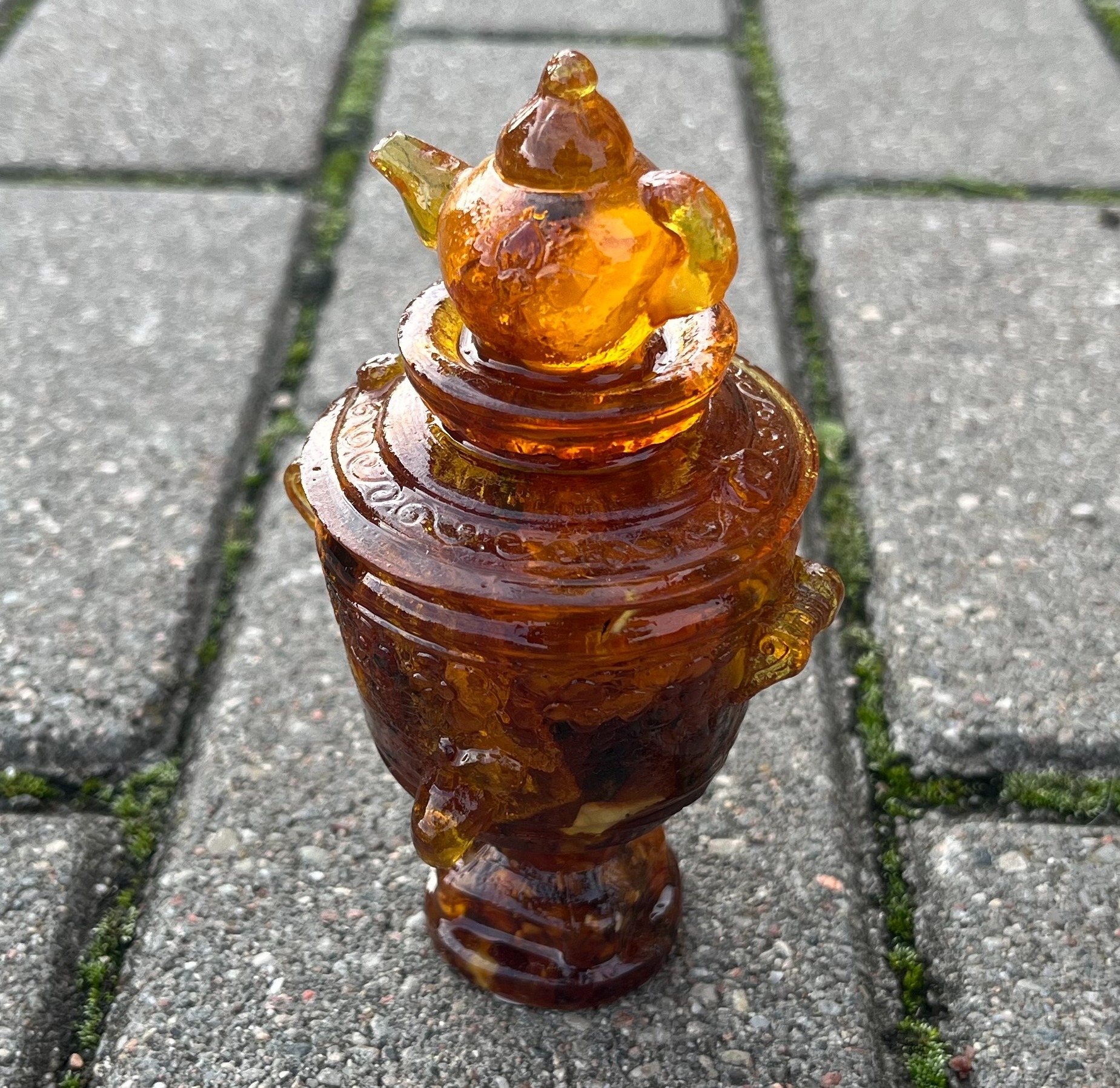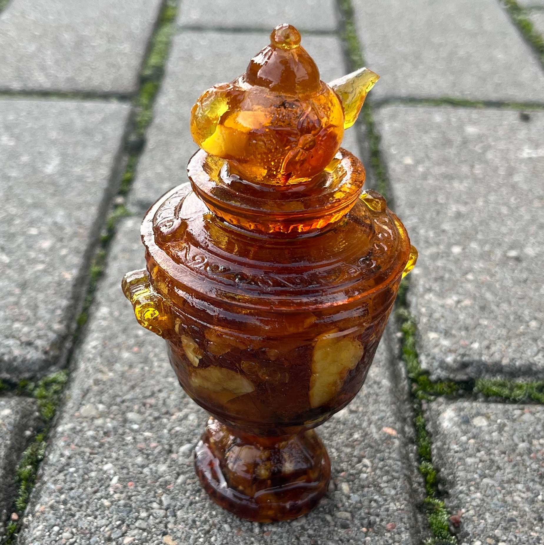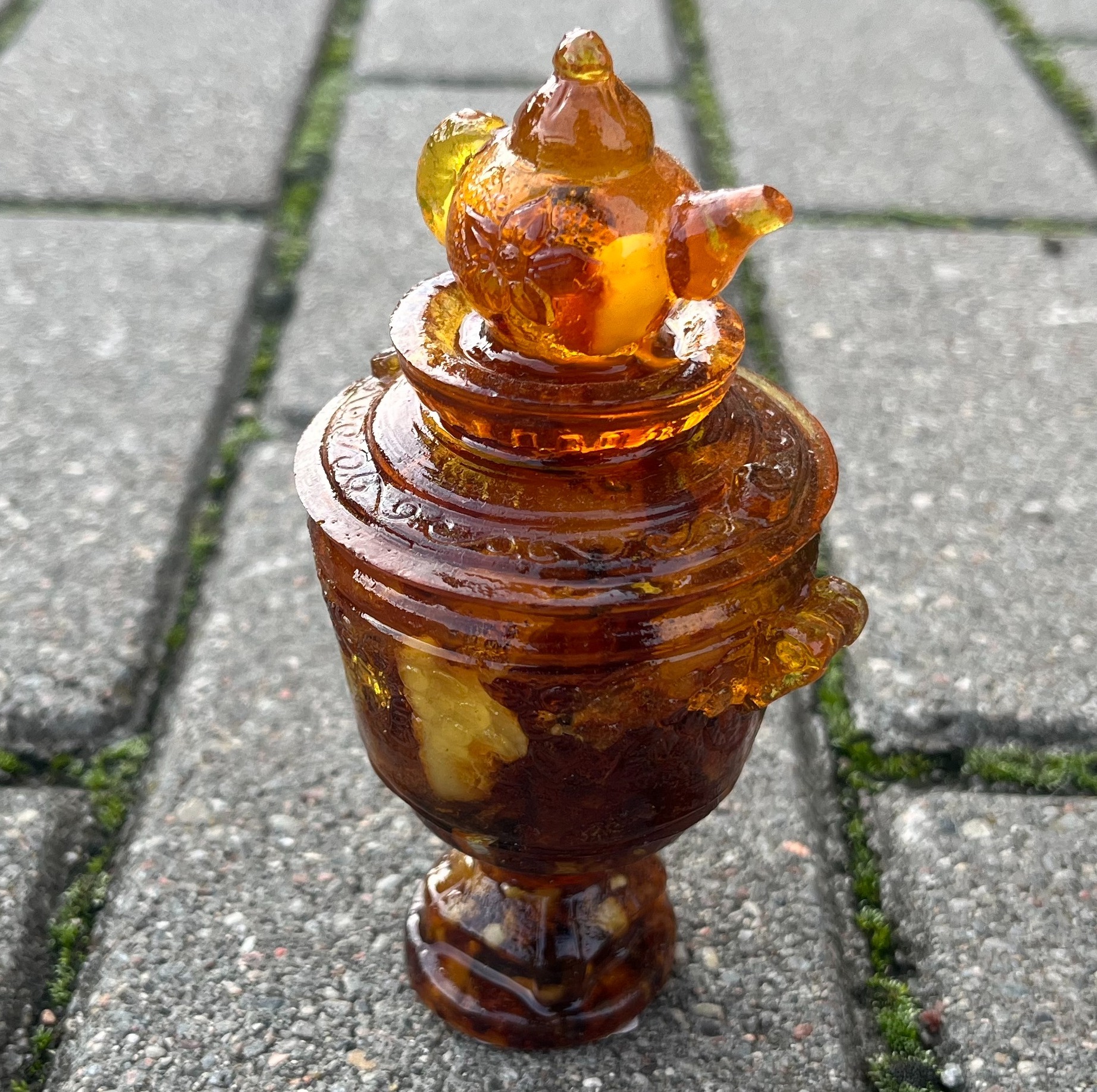 Фигурка-сувенир "Самовар с чайником большой", янтарная композиция.