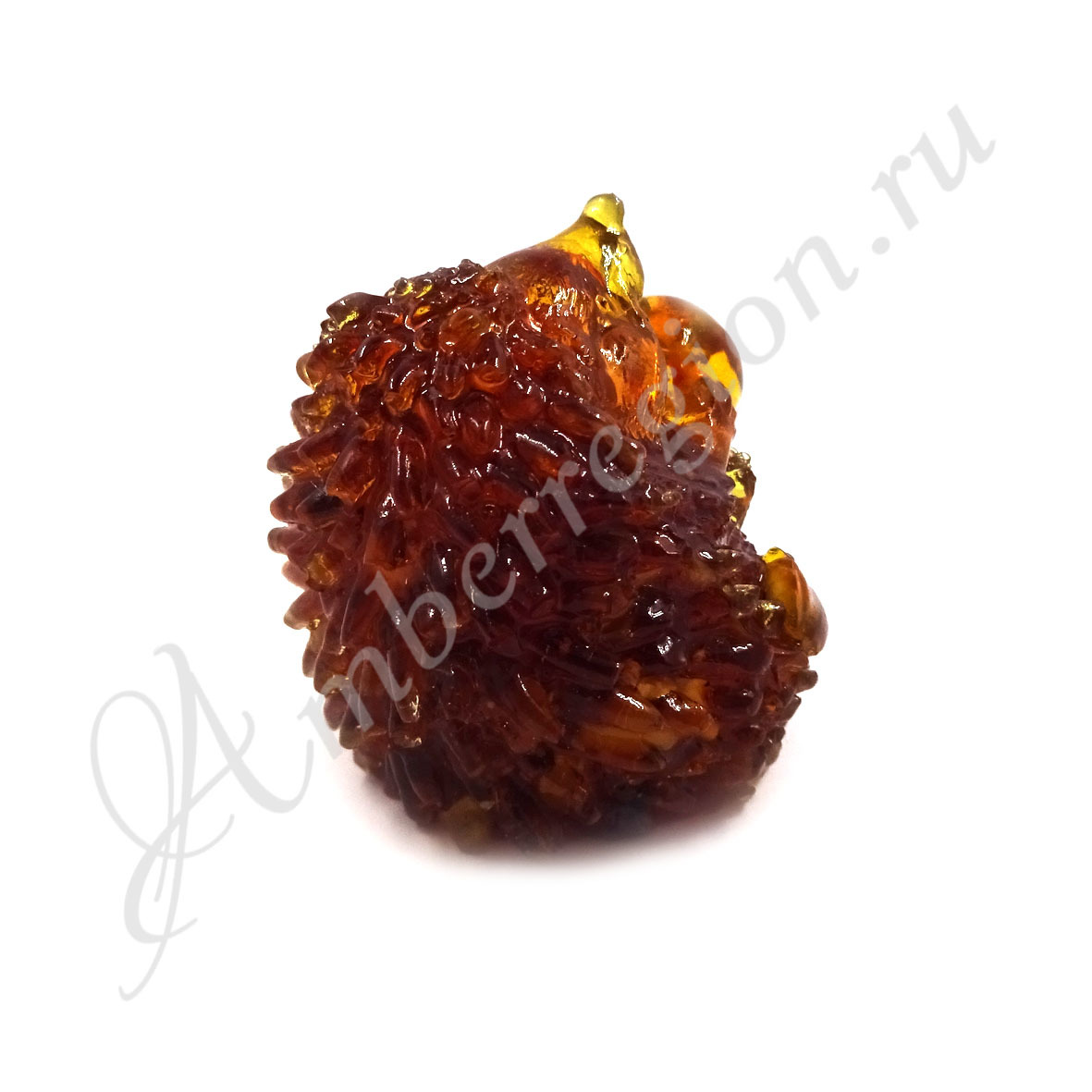 Фигурка-сувенир "Ёжик с яблочком", янтарная композиция.