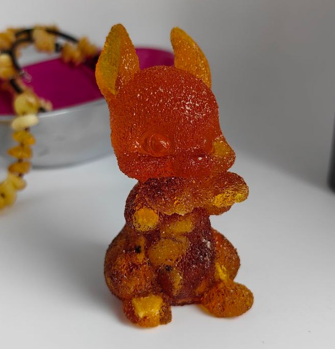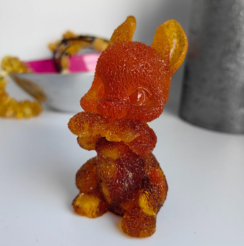 Фигурка-сувенир "Зайка лапки сложил", янтарная композиция.