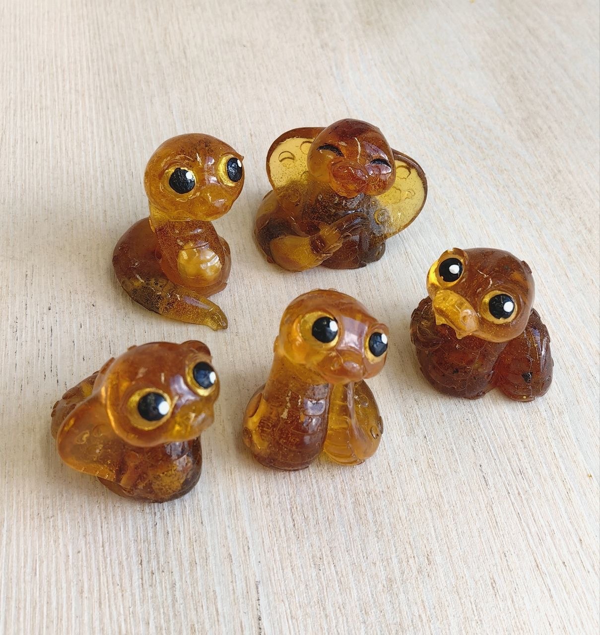Фигурка-сувенир "Змейка малая с глазками", в ассортименте, янтарная композиция.